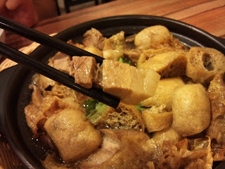I ordered fresh side pork, lean pork, meat balls, fritters and tao fu pok; all mixed together in one pot :) The service here is quite good! OMG, I think I may have my dinner here tonight, again.